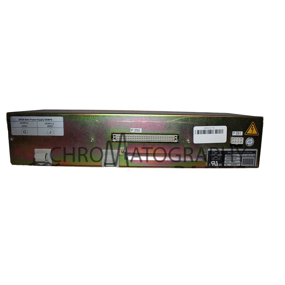 The Bruker Gemini MPS 20558 is a main power supply for lab equipment, such as spectrometers and HPLC systems, like the Agilent 1100 series. It uses a high-voltage input of 200-240V at 6A, with 50Hz and 60Hz frequencies.